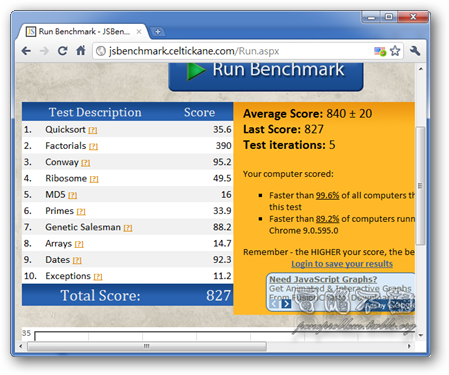 統計:本項目由Google Chromium 9.0.595.0取勝,平均為840分。
