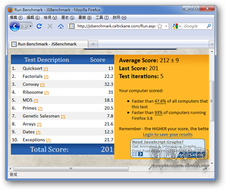 亞運結束了,瀏覽器也要來動一動!2010/11/28 瀏覽器效能評測