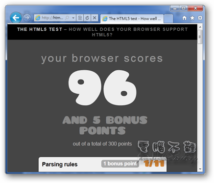 - Internet Explorer 9 Beta:擁有0個第一名、0個第二名、1個第三名、0個第四名、2個第五名、11個第六名。