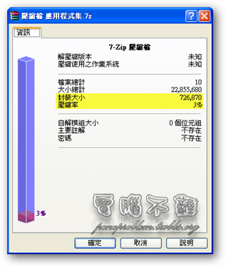 - 7-Zip:20.2MB→3.15KB 壓縮率為0%