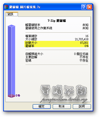 - 7-Zip:20.6MB→84.96KB 壓縮率為0%