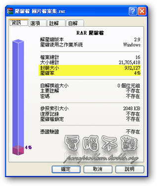 - WinRAR:20.6MB→910.28KB 壓縮率為4%