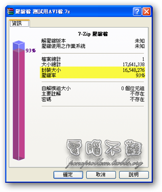 - 7-Zip:16.8MB→15.78MB 壓縮率為93%
