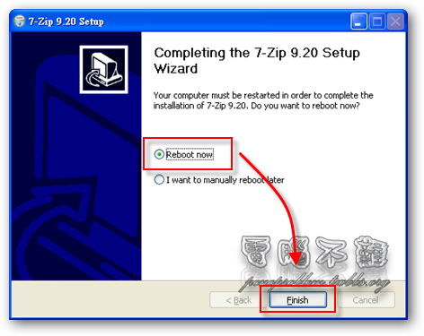 步驟二 安裝好後重新開機,讓7-Zip能正常完成電腦內的所有設定。