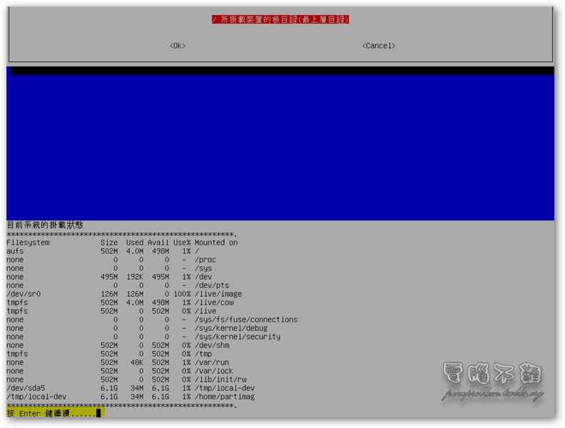 然後Clonezilla會顯示目前掛載的分割區狀態,按下Enter鍵繼續。