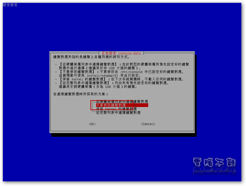 再來要選擇鍵盤,一般來說,用「不要修改鍵盤對應」即可。