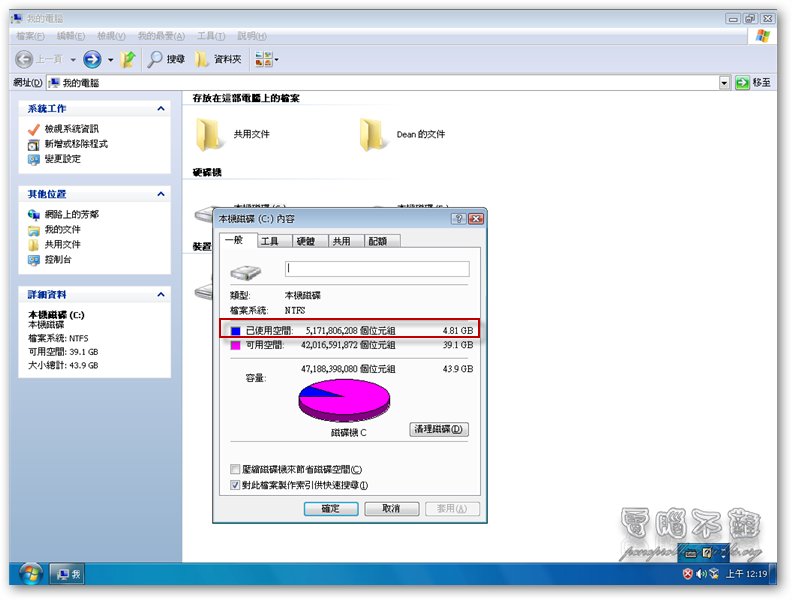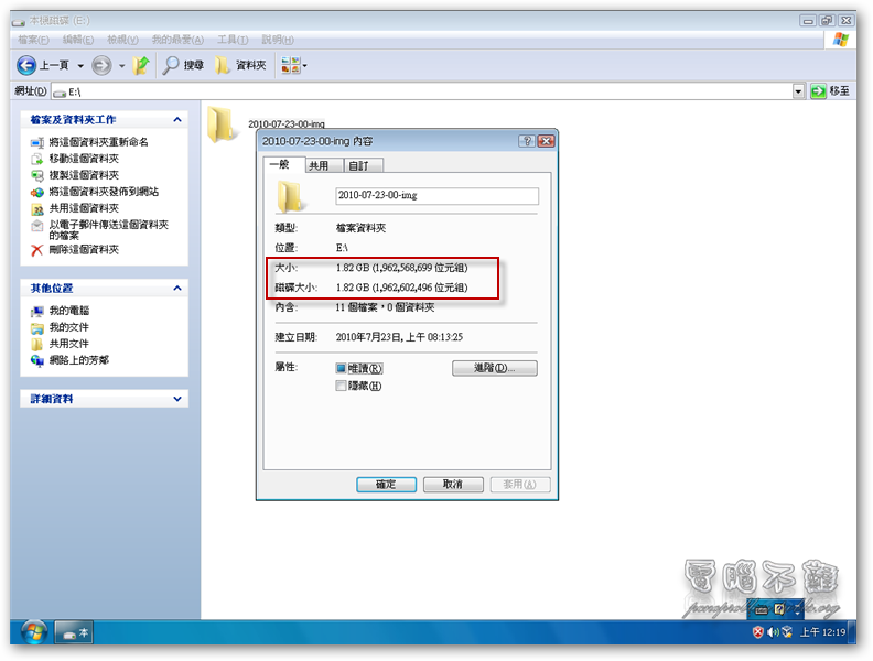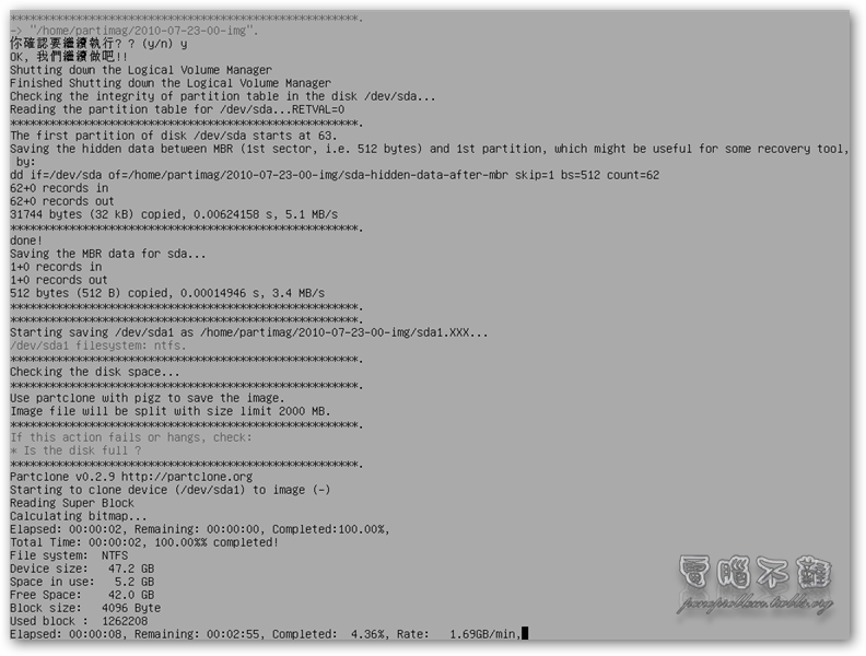 偷偷看一下Clonezilla的壓縮效果如何,看了真的會嚇到,4.81GB的Windows XP,被壓縮成1.82GB的備份檔案了!