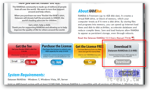 首先利用上面的連結進入Dataram的RAMDisk頁面,然後按下「Download it」連結。