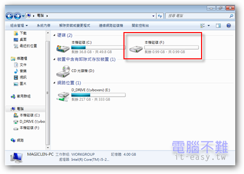 按下「Start RAMDisk」後,電腦內便會多出一個磁碟機。