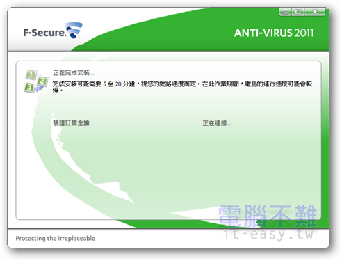 再來F-Secure Anti-Virus 2011安裝程式會連到網路下載更新。