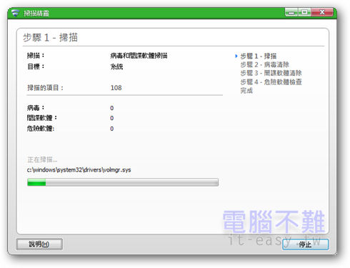 掃描精靈在手動掃描或排成掃描時會出現,可以顯示即時的掃描進度。