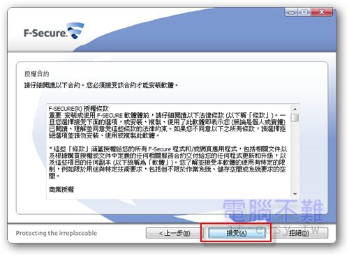 授權合約部分,稍微看一下後,按下「接受」按鈕。