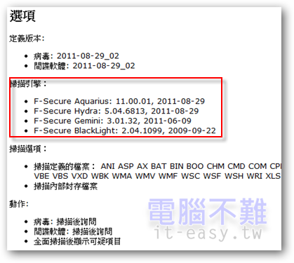 F-Secure Anti-Virus 2011一共有四顆引擎,分別是: