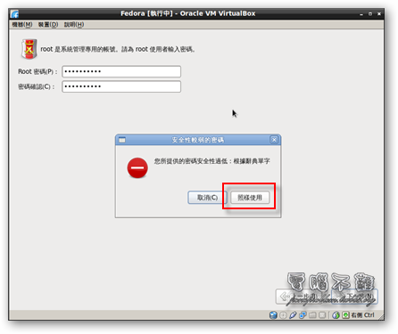 或許會因為密碼太簡單而出現如下視窗,若不想改密碼,點選「照樣使用」即可。
