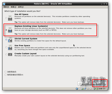 步驟十七 選擇「Replace Existing Linux System(s)」。