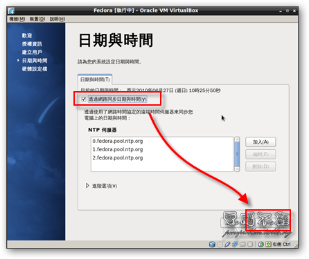 步驟二七 設定日期,現在網路普及,建議使用網路同步。