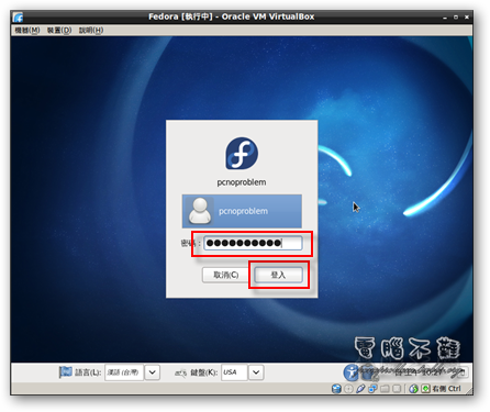 步驟二九 進入登入畫面,選擇使用者,輸入密碼,即可登入。