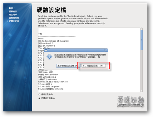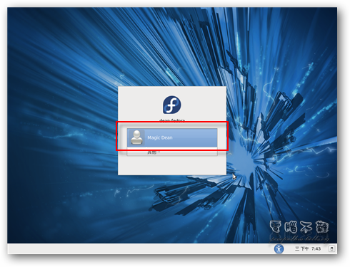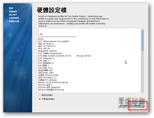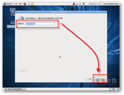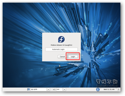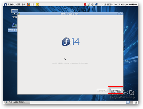 步驟一 燒好Fedora Live CD後,我們要用CD來進行開機的動作。若你不會使用BIOS設定光碟開機,請參考這篇。