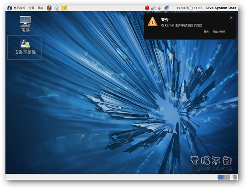 步驟八 登入(Login)到桌面,點選「安裝至硬碟」圖示。