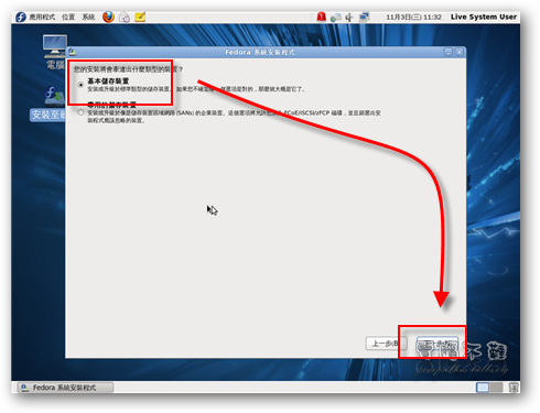 步驟十一 選擇「基本儲存裝置」,按「下一步」。