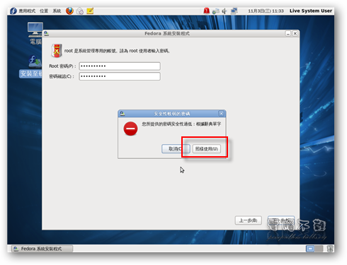 或許會因為密碼太簡單而出現如下視窗,若不想改密碼,點選「照樣使用」即可。