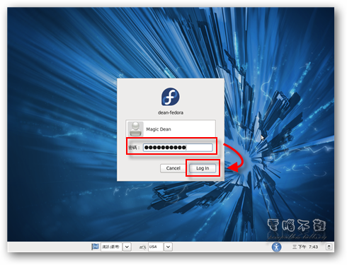 步驟二十八 接著進入登入畫面,選擇使用者,輸入密碼,即可登入。