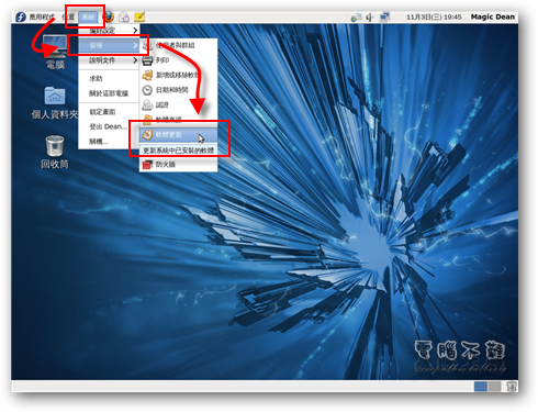 步驟一 點選Gnome選單「系統->管理->軟體更新」。