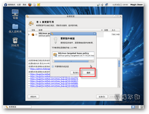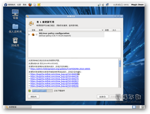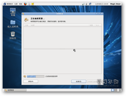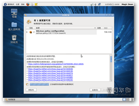 步驟二 等候Fedora向伺服器取得更新資訊。