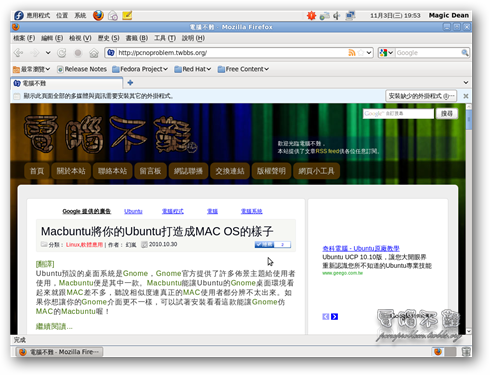 Fedora 14預設的瀏覽器和Ubuntu 10.10一樣,皆是FireFox 3.6.10。