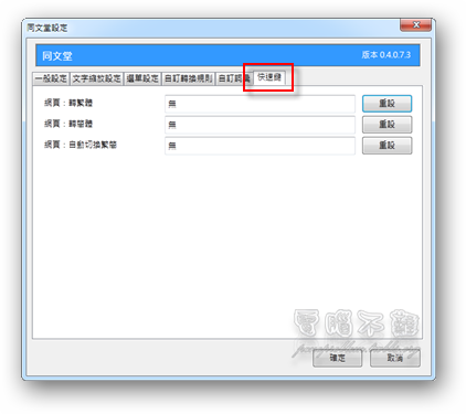 通常我使用同文堂會設定「快速鍵」,這樣以後一遇到簡體網站,我只要花零點幾秒的時間按下鍵盤快速鍵,就可以將頁面中的簡體文字轉為繁體。