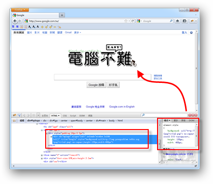 輕易的把Google首頁的Google大LOGO改成電腦不難的LOGO。