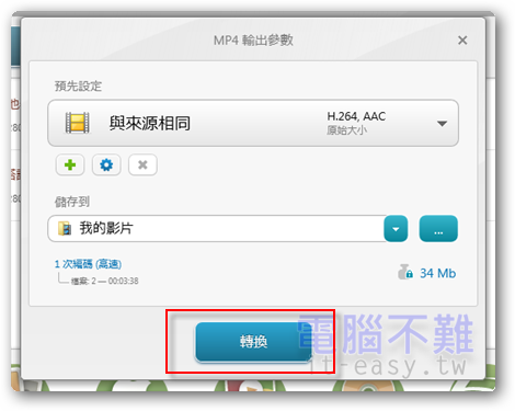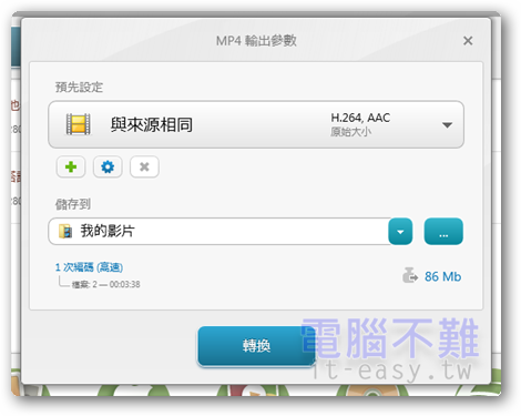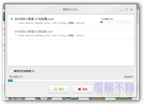轉檔設定完成後,就可以按下「轉換」按鈕,開始進行轉檔。