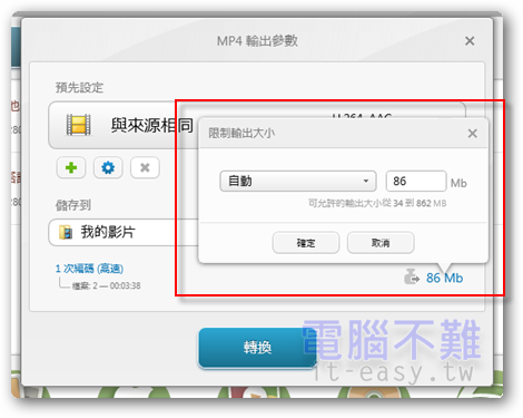 Freemake Video Converter還有一個不錯的功能,就是它能夠限制影片輸出的檔案大小。