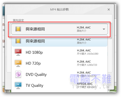 按下轉檔格式的圖示後,會跳出轉檔設定視窗。