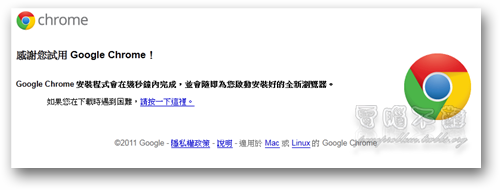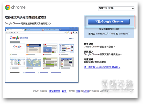 Google官方下載頁:http://www.google.com/chrome/?hl=zh-TW