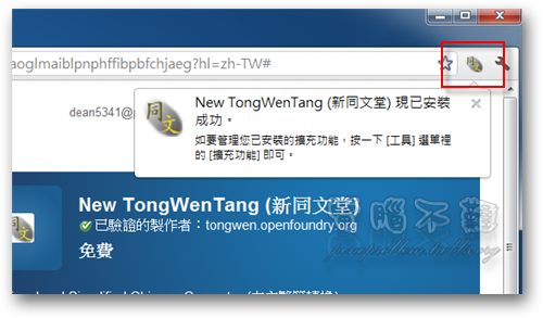 安裝方法和前面介紹的一樣。連結到新同文堂的擴充功能下載頁面,按下「安裝」。