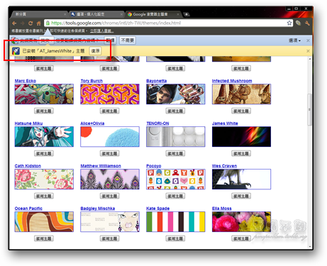 找到自己喜歡的主題樣式後,按下「套用主題」按鈕,便可以無痛安裝新主題了!