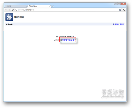 一開始可能沒有任何擴充功能,可以利用下面的連結到Google官方去搜尋下載你想要的擴充功能。