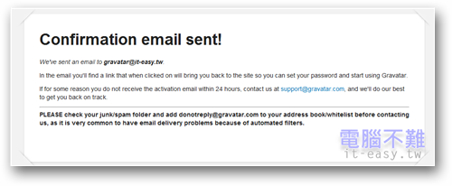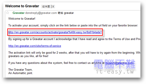 步驟五 來到剛才填入的E-mail內收信,會發現一封從Gravatar寄來的信,裡面有啟動連結。