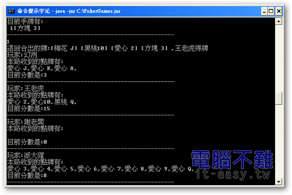 - 一局一局算分,直到有人超過100分(含)遊戲才結束。