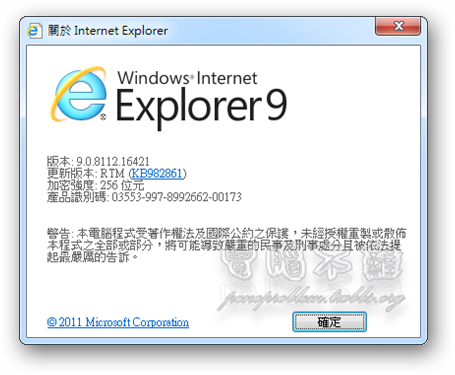 下載後開啟安裝程式,進行Internet Explorer 9的安裝。
