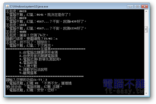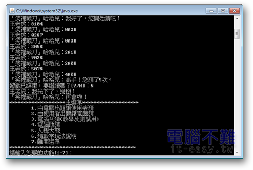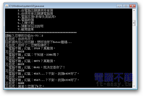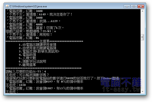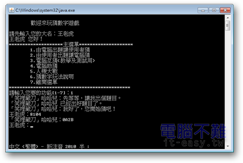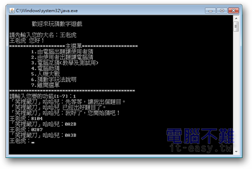 最近看到幻冽在用Java開發傷心小棧的遊戲,自己也手癢來寫了一個猜數字遊戲。第一次運用物件導向的概念來開發程式,感覺很不習慣,因此剛開始撰寫時還保留過去使用「程序導向」的寫法,後來發現整個專案很不對勁,程式碼重複的地方太多了,因而砍掉重練。弄了兩三天才終於完成了這個好玩又可以鍛鍊腦筋的猜數字遊戲文字版。