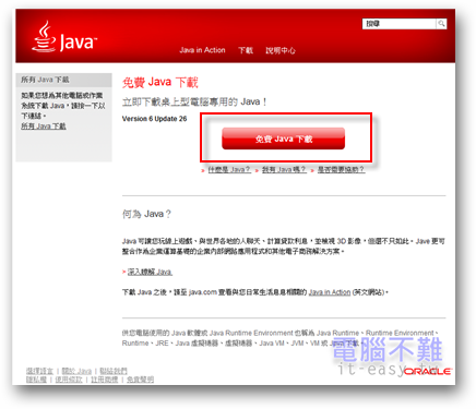 Java下載網站:http://www.java.com/zh_TW/