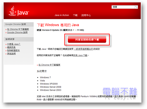 步驟一 利用上面的連結來到Java的網站。進去後就可以立即看到下載的連結。