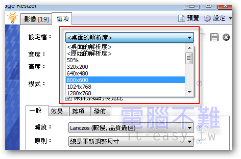 Light Image Resizer已內建許多設定檔,但不一定能符合我們的需求。