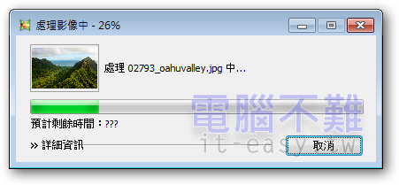 設定完成後,按下「開始」按鈕,便可以開始處理圖片。處理圖片需要時間,耐心等候吧!