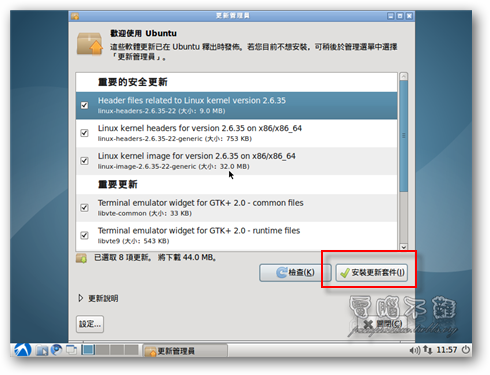 安裝Lubuntu 10.10差不多這樣就大功告成了,若還有疑問,可以至文章第一頁提到的Ubuntu正體中文站發問,那邊高手雲集。也可以看看其他人發問的問題或是使用經驗,一定會對你融入Ubuntu這個大家族有所幫助的!