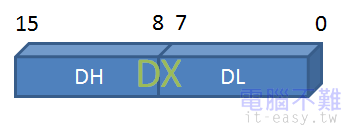 DX可用來進行資料運算、乘除運算,或是拿來存放I/O的位址。