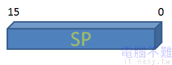 SP永遠指向堆疊頂端的最新資料儲存位址。當堆疊資料有進(PUSH)出(PUP)時,SP的位址也會隨之加減更動。