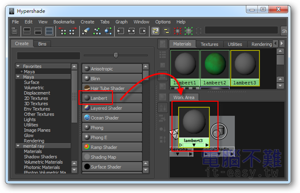 第3步 在Hypershade內再新增一顆Lambert材質球。